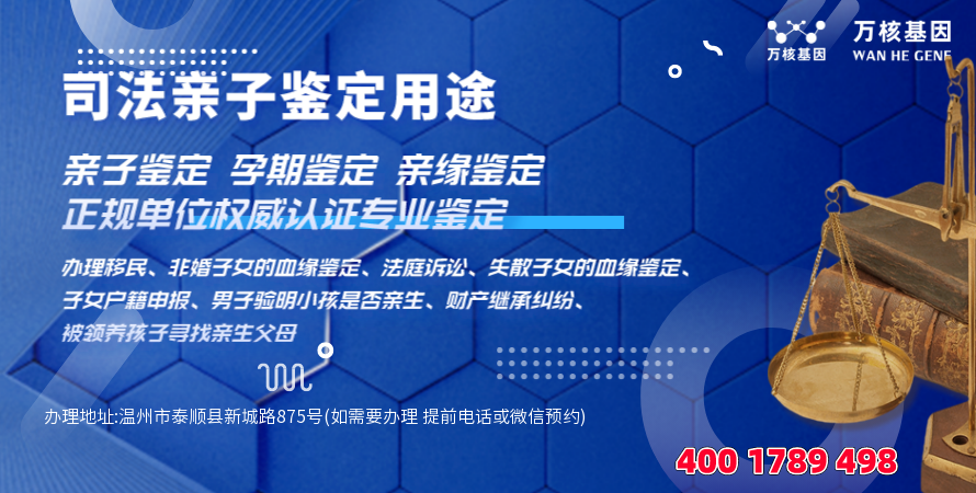 泰顺司法dna亲子鉴定办理地址:温州市泰顺县新城路875号(如需要办理 提前电话或微信预约)-预约电话:4001789498。